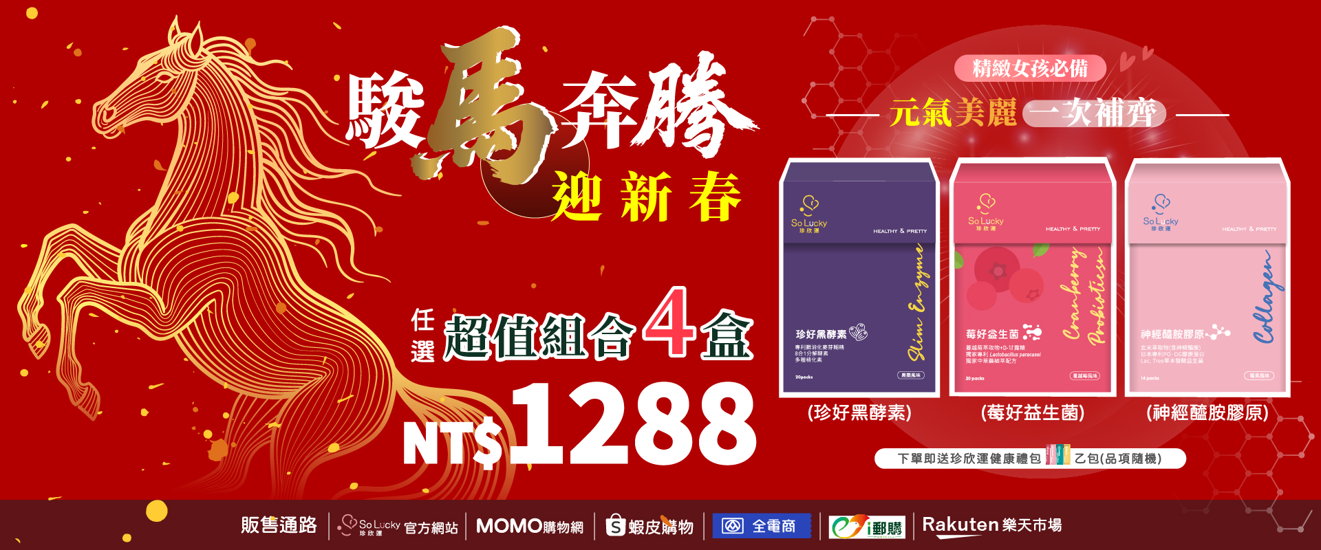 【珍欣運】莓好益生菌、神經醯胺膠原、珍好黑酵素 |駿馬奔騰 任選4盒 新年優惠只要 $1288 |新年優惠商品不適用官網折價券