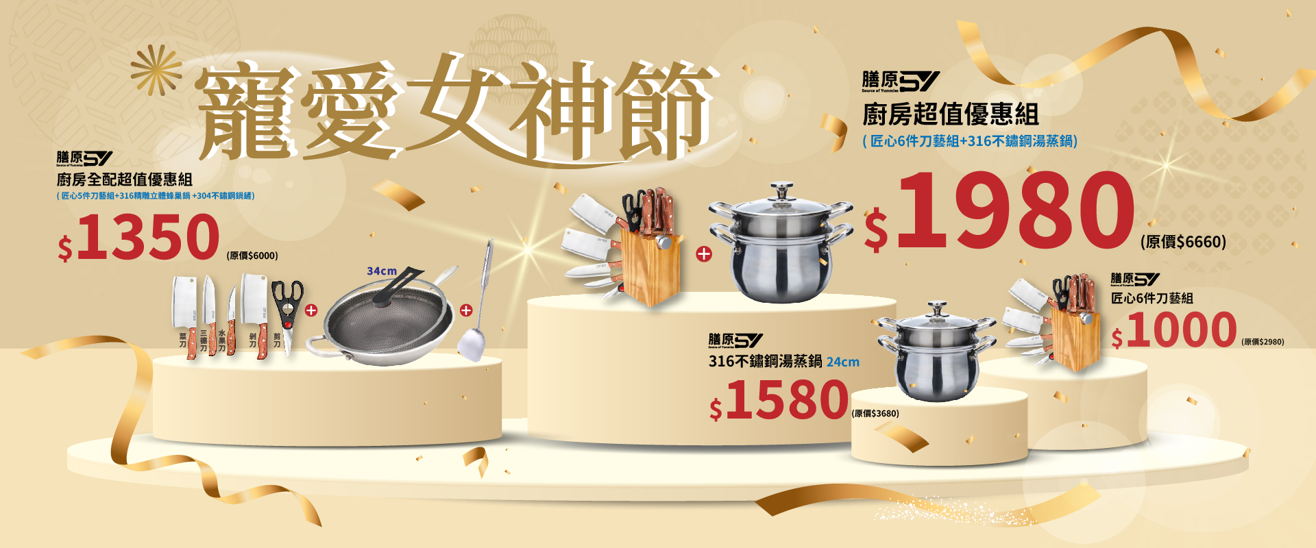 【SY 膳原】寵愛女神節 廚房超值優惠組 $1980|316不鏽鋼湯蒸鍋 + 匠心6件刀藝組|優惠商品不適用官網折價券